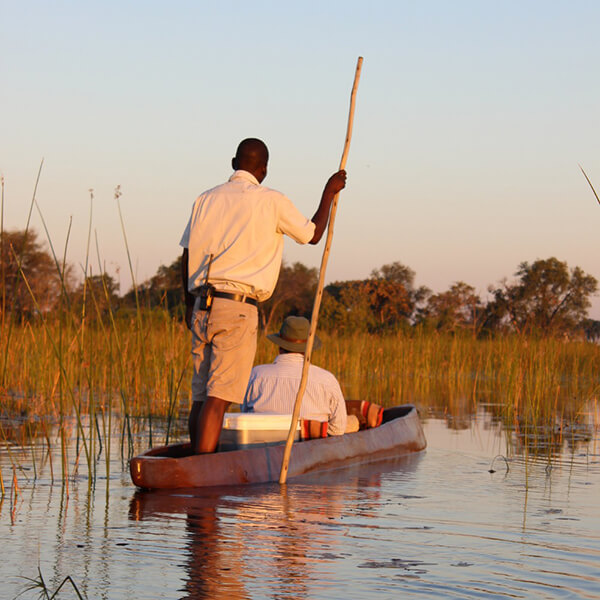 A mokoro trip down the Mbudi channel offers a peaceful and unique perspective of the Delta.
